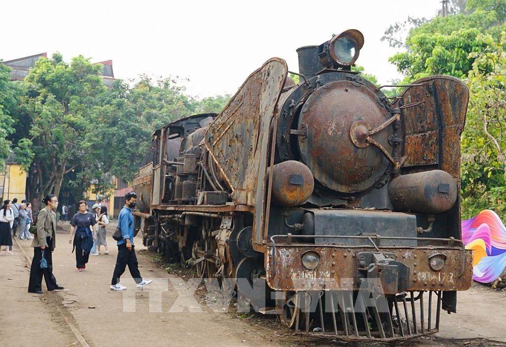 Nhà máy Xe lửa Gia Lâm trở thành điểm nhấn lễ hội Thiết kế sáng tạo Hà Nội 2023 với nhà xưởng, đầu máy trở thành không gian nghệ thuật triển lãm, trưng bày… thu hút đông đảo người dân đến tham quan. Ảnh: Khánh Hoà - TTXVN