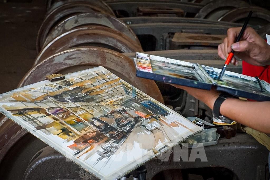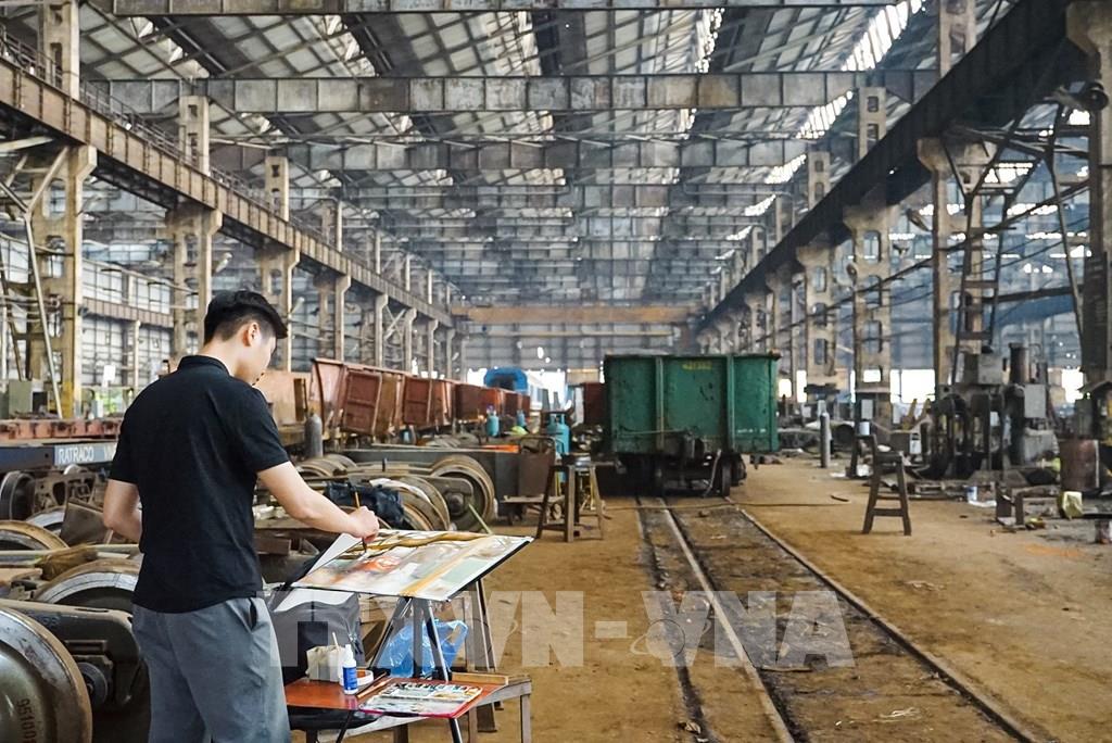 Nhà máy xe lửa Gia Lâm với kiến trúc độc đáo mang nhiều giá trị nghệ thuật là nơi rất nhiều các họa sĩ tìm đến để sáng tác. Ảnh: Khánh Hoà - TTXVN