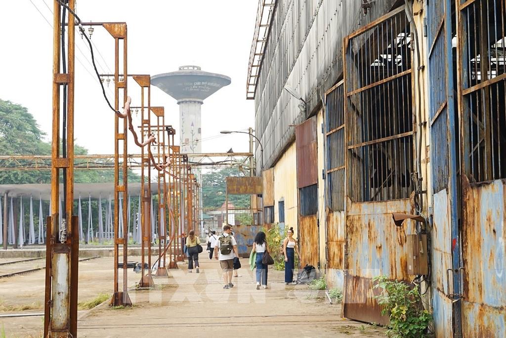 Nhà máy Xe lửa Gia Lâm trở thành điểm nhấn lễ hội Thiết kế sáng tạo Hà Nội 2023 với nhà xưởng, đầu máy trở thành không gian nghệ thuật triển lãm, trưng bày… thu hút đông đảo người dân đến tham quan. Ảnh: Khánh Hoà - TTXVN ; Nhà máy xe lửa Gia Lâm được thành lập năm 1905 dưới thời Pháp thuộc, nơi đây như một kho tàng lưu giữ những ký ức về một thuở vàng son của đường sắt Việt Nam. Từ một nhà máy cũ nằm trong diện di dời ra khỏi nội đô - Nhà máy xe lửa Gia Lâm và các ga tàu hỏa Hà Nội được cải tạo thành các tổ hợp sáng tạo, “đánh thức” các di sản công nghiệp, tạo ra hệ giá trị mới phục vụ phát triển du lịch thành phố Hà Nội sáng tạo. Ảnh: Khánh Hoà - TTXVN