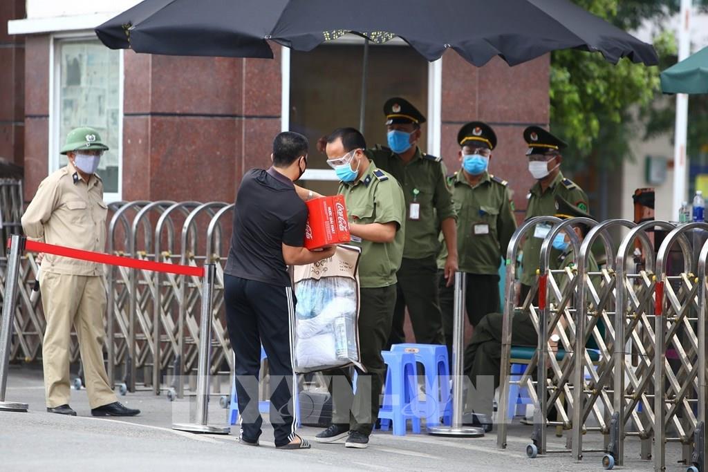 Người nhà mang gửi những đồ dùng thiết yếu cho người đang cách ly bên trong bệnh viện. Ảnh: Minh Quyết – TTXVN