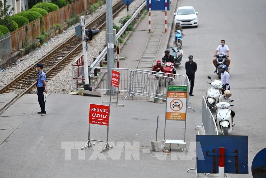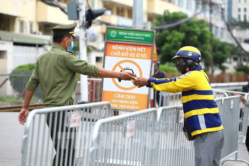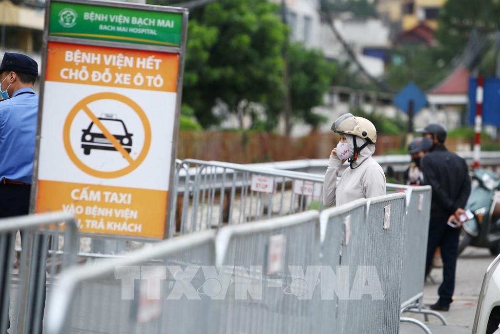 Các hoạt động ra, vào bệnh viện được kiểm soát chặt chẽ. Ảnh: Minh Quyết – TTXVN