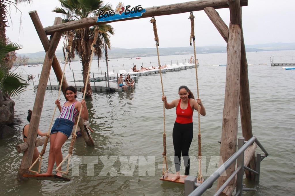 Người dân vui chơi giải trí trên mặt hồ Galilee. Ảnh: Cao Văn Ứng-P/v TTXVN tại Israel