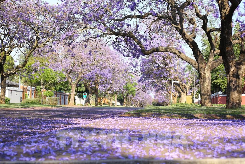 07:32' - 13/11/2024Thủ đô Pretoria của Nam Phi nổi tiếng với những cây phượng tím Jacaranda, khiến thành phố này có biệt danh là “Thành phố hoa phượng tím”. Từ khoảng đầu tháng 10 đến giữa tháng 11 hằng năm là mùa xuân tại đất nước Nam Bán cầu, những hàng cây Jacaranda tại thủ đô Pretoria lại khoe sắc, phủ sắc tím trên các nẻo đường, mang lại vẻ đẹp rực rỡ cho thủ đô. Đặc biệt, mỗi buổi sáng sớm khi xe cộ còn chưa đi lại, nhiều con đường ở thủ đô lại được trải thảm tím trên đường.
