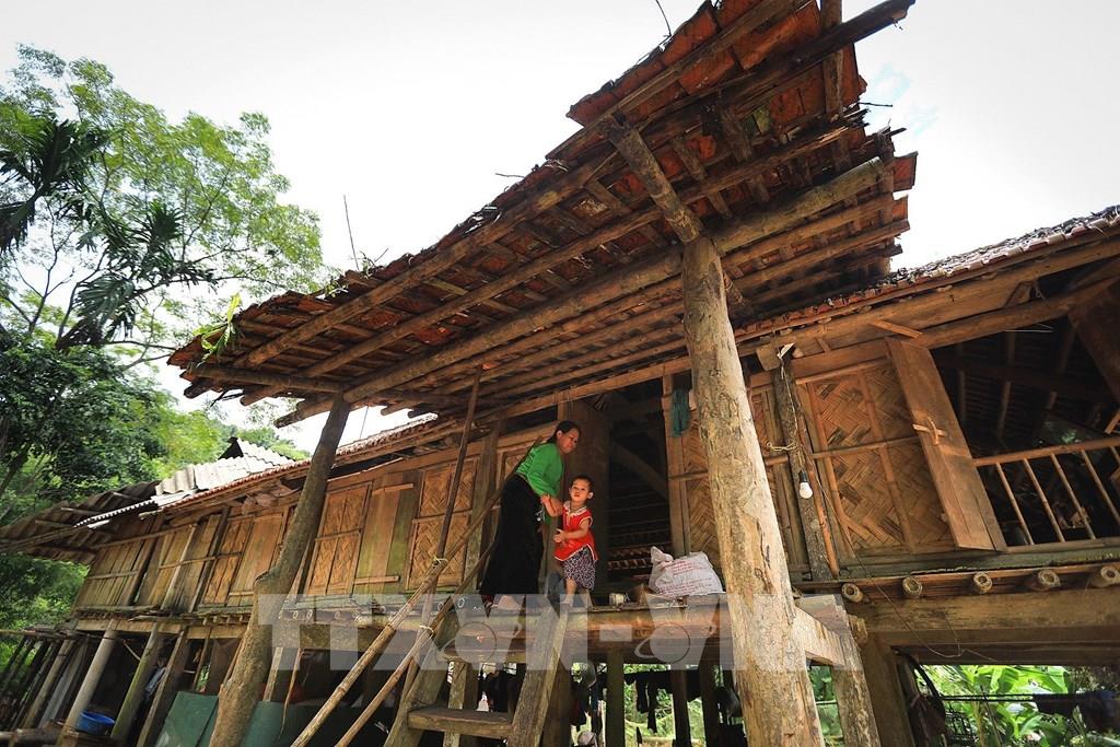 100% hộ dân nơi đây sinh sống trong những căn nhà sàn truyền thống, những phong tục, tập quán và nét sinh hoạt hằng ngày vẫn được gìn giữ hầu như nguyên vẹn. Ảnh: Trọng Đạt-TTXVN