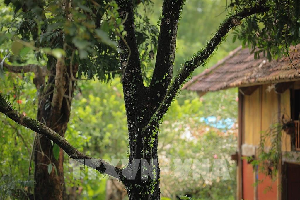 Dưới những tán cây lớn, từng nếp nhà sàn theo kiến trúc cổ thấp thoáng bình yên. Ảnh: Trọng Đạt-TTXVN