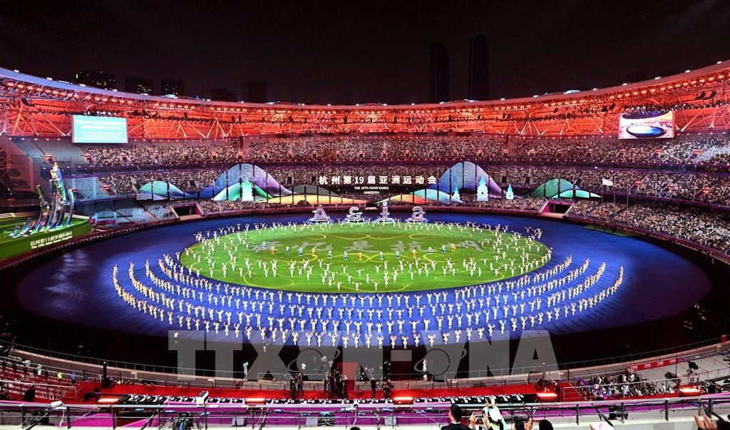 Quang cảnh lễ bế mạc ASIAD 2023 trên sân vận động Olympic Hàng Châu tối 8/10/2023. Ảnh: THX/TTXVN