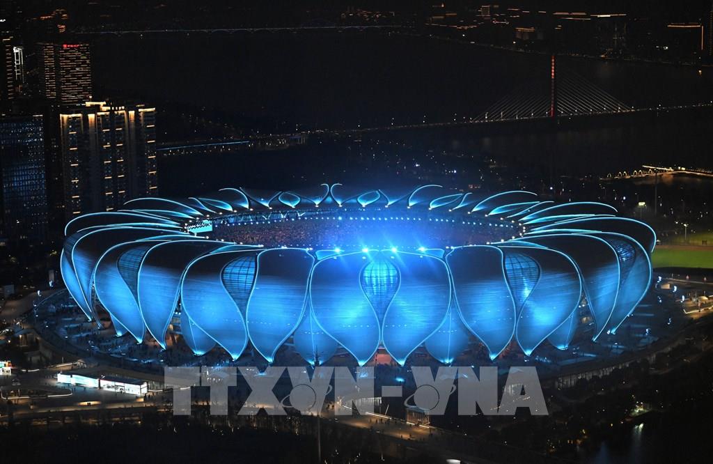 Quang cảnh sân vận động Olympic Hàng Châu trong lễ bế mạc ASIAD 2023 tối 8/10/2023. Ảnh: THX/TTXVN