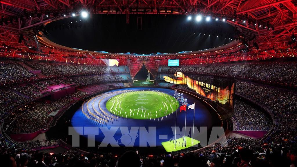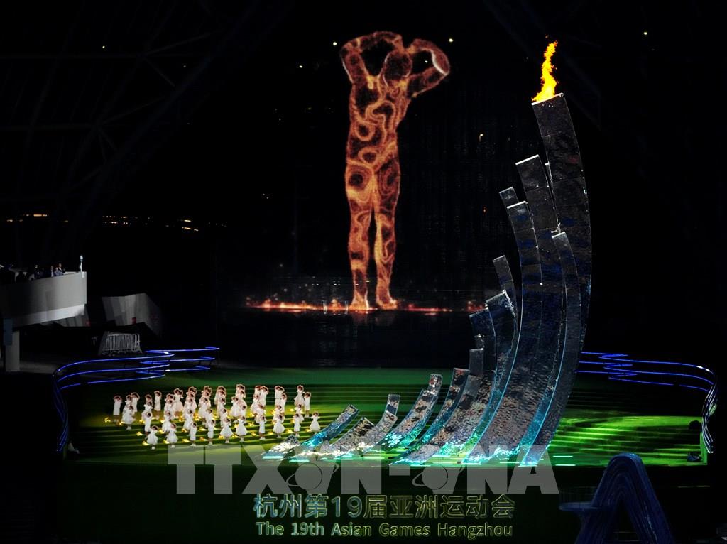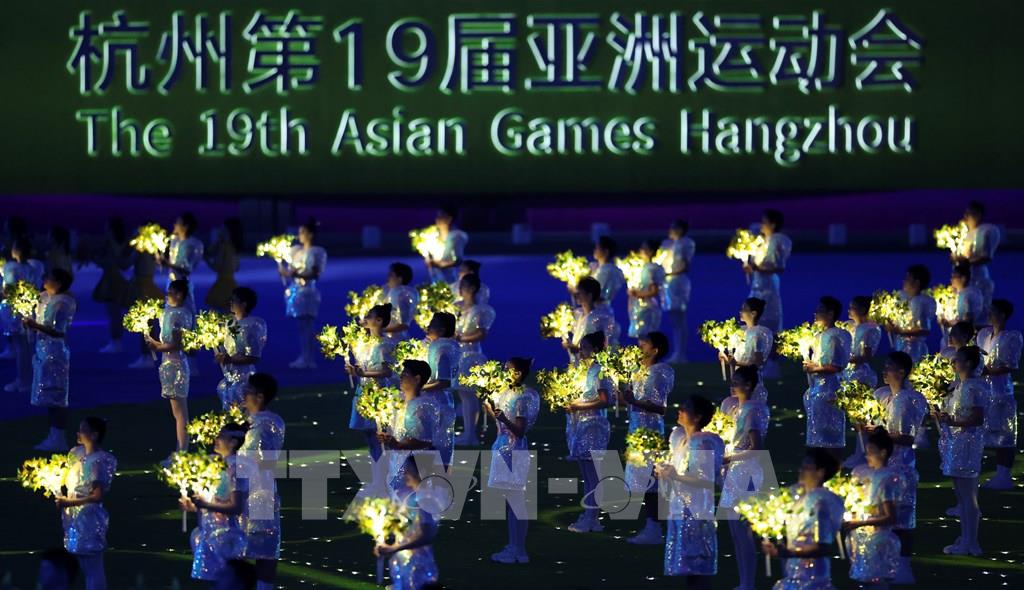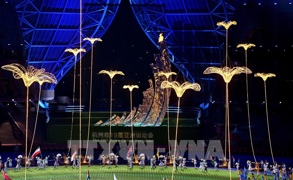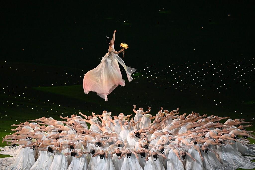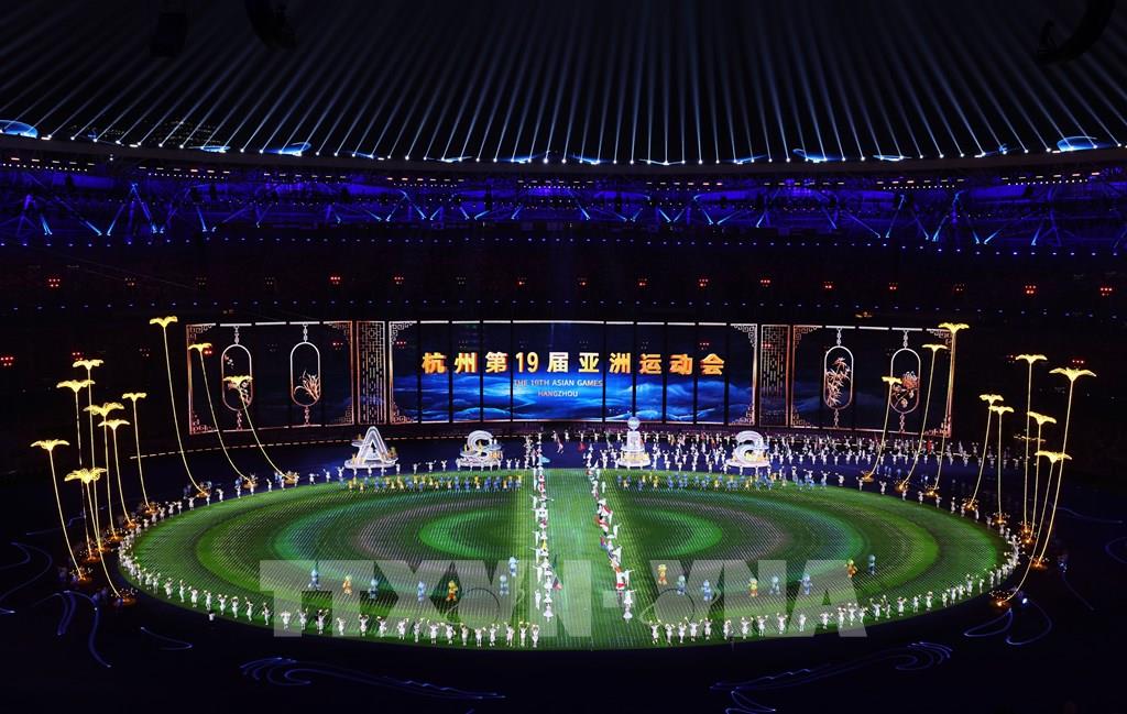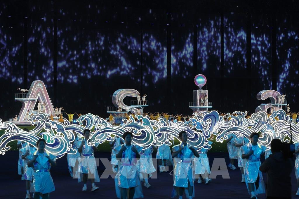 Màn biểu diễn nghệ thuật độc đáo tại lễ bế mạc ASIAD 2023 trên sân vận động Olympic Hàng Châu tối 8/10/2023. Ảnh: AFP/TTXVN