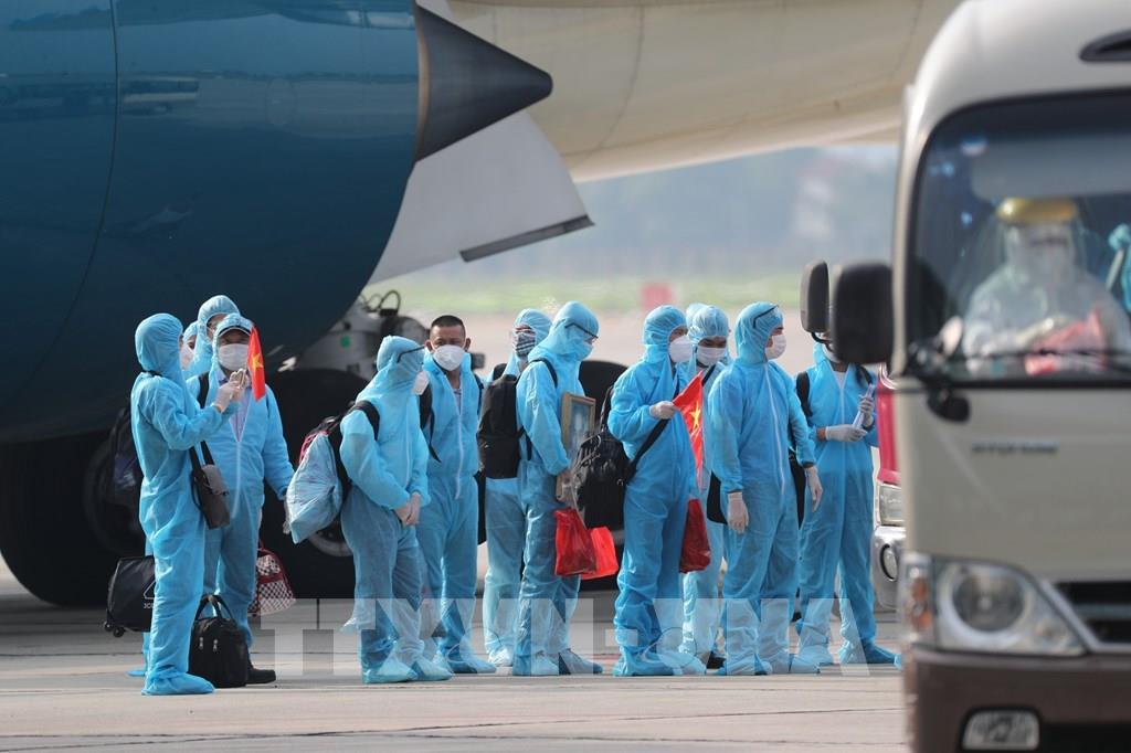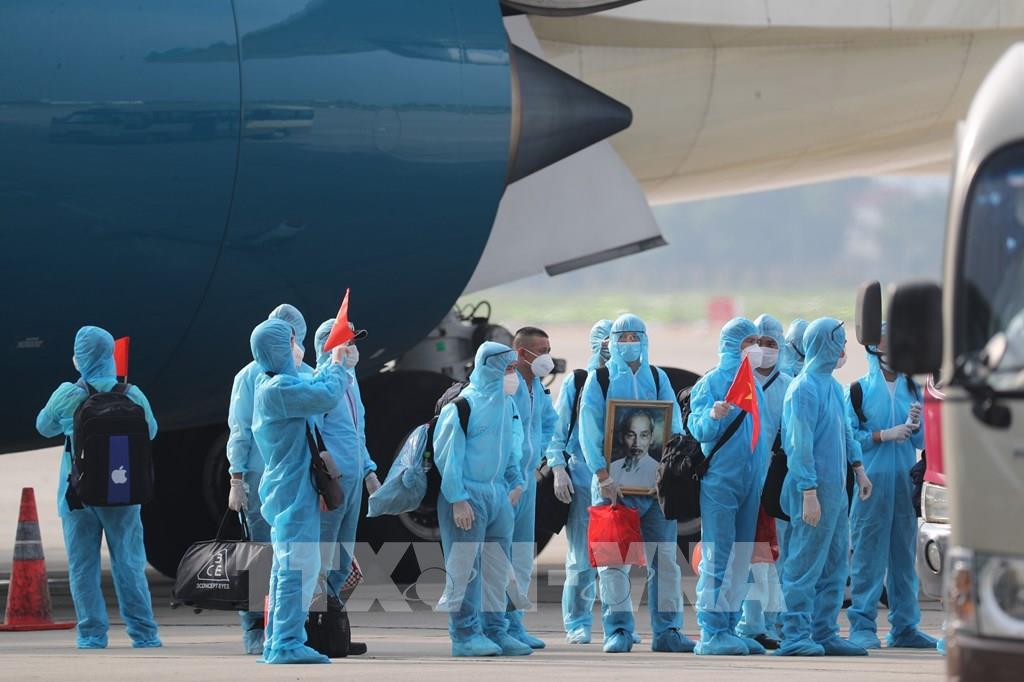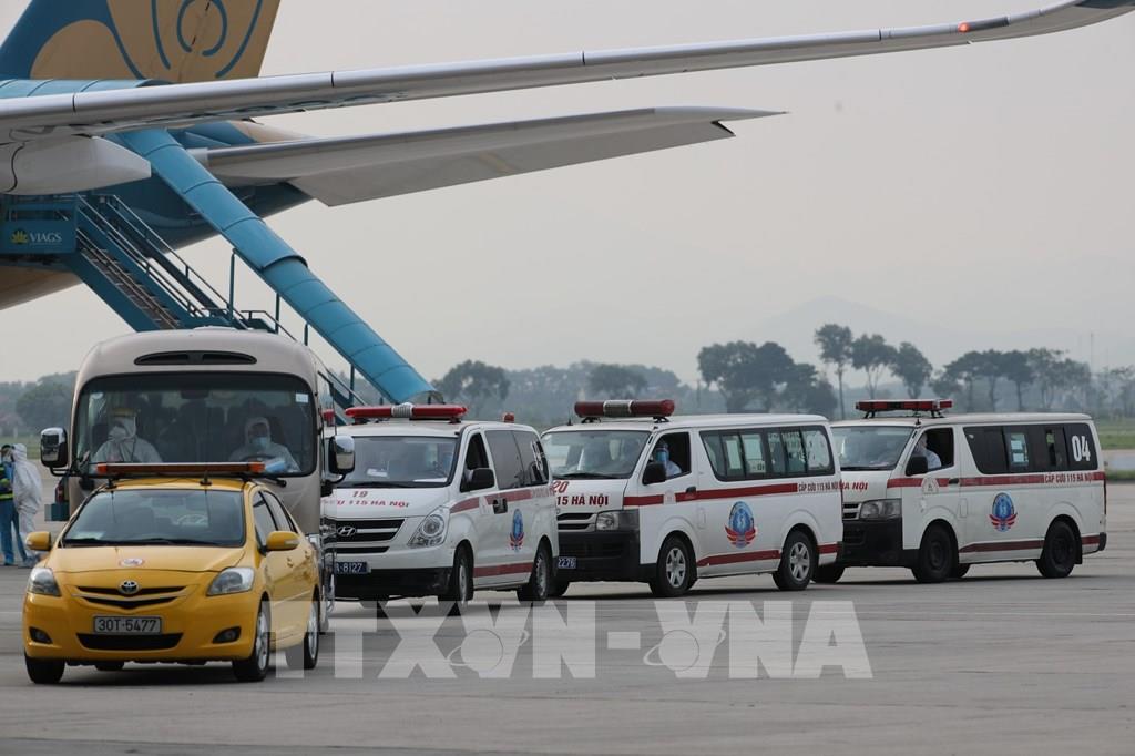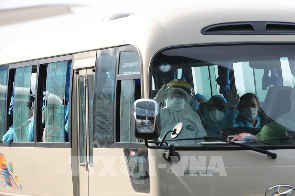 Sau khi xuống máy bay, toàn bộ công dân và phi hành đoàn sẽ được đưa về khu cách ly y tế. Ảnh: Thành Đạt - TTXVN