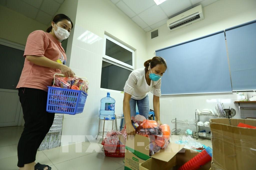 Các điều dưỡng viên chuẩn bị đồ dùng thiết yếu, sẵn sàng đón công dân trở về. Ảnh: Minh Quyết - TTXVN