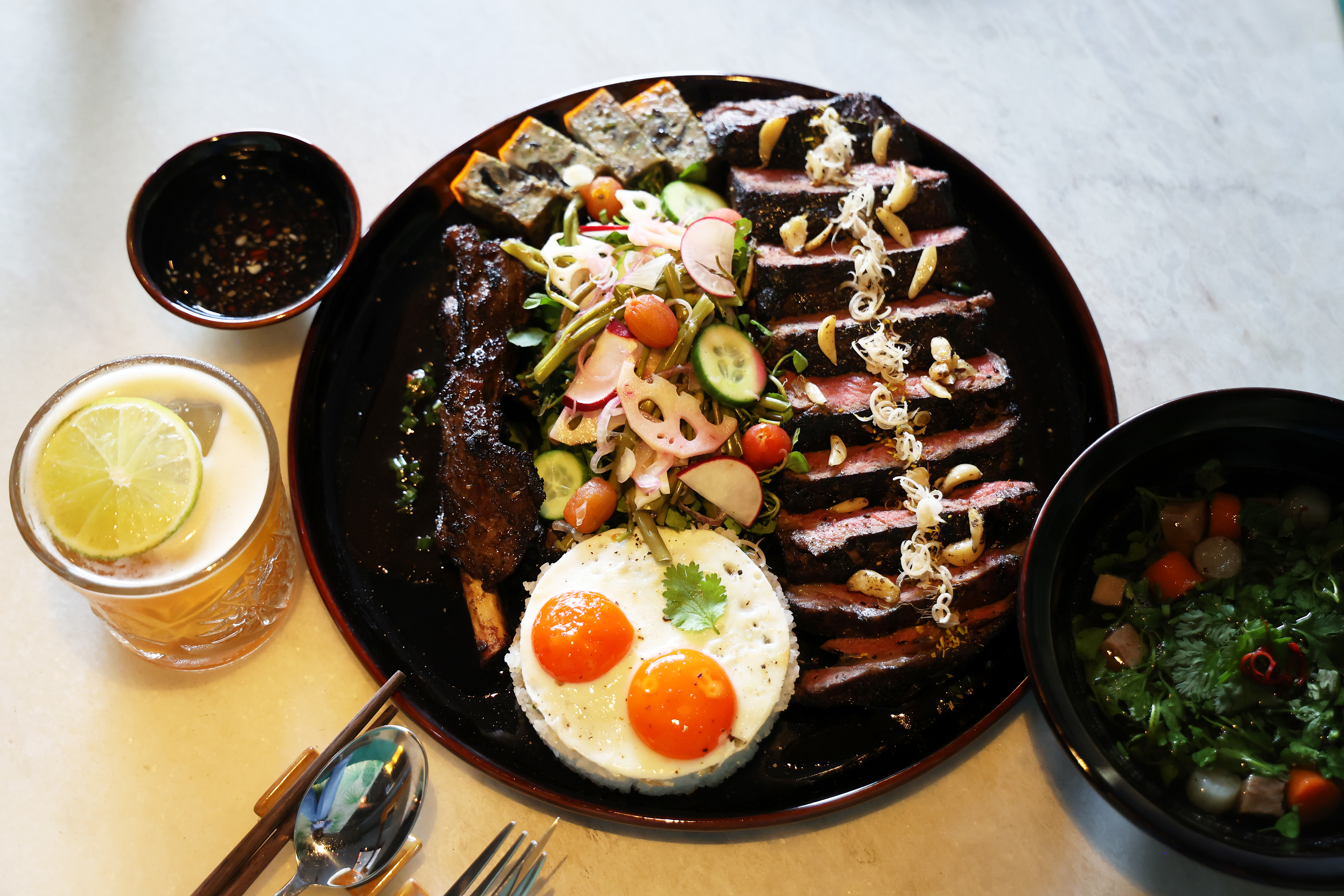 09:41' - 28/11/2024Cơm tấm Việt Nam nằm trong top 40 món ăn đường phố ngon nhất thế giới do chuyên trang ẩm thực quốc tế TasteAtlas bình chọn, vừa được chế biến thành phiên bản 100 USD (tương đương 2,5 triệu đồng) trong nhà hàng một sao Michelin ở Thành phố Hồ Chí Minh. Điểm khác biệt là đầu bếp thay thế thịt lợn bằng thịt sườn bò Úc, mỗi đĩa cơm tấm cho 2 người ăn sử dụng một kg thịt bò.