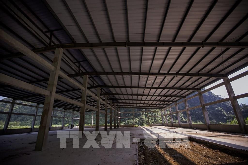 Các hạng mục đã được xây dựng như: Hệ thống nhà xưởng, đế bê tông hệ thống xử lý và đế bê tông lò chịu tải... của dự án mô hình Khu xử lý chất thải rắn quy mô liên xã huyện Yên Thủy bị bỏ hoang phế và đang dần hư hỏng. Ảnh: Trọng Đạt-TTXVN