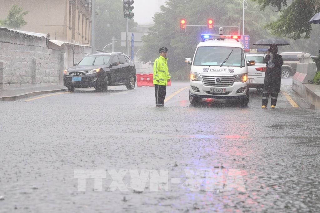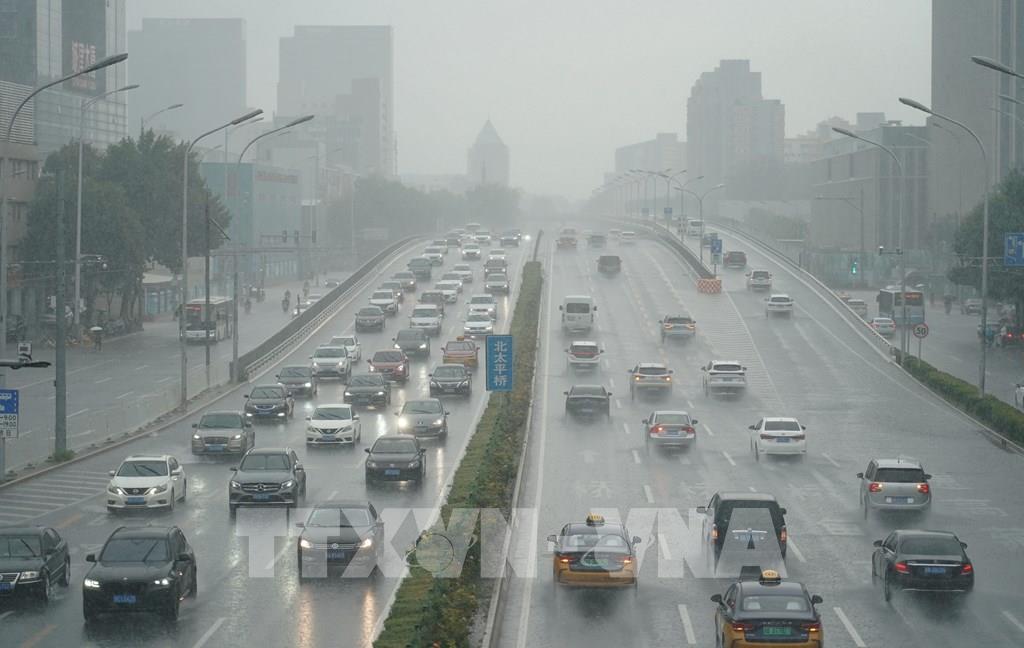 Các phương tiện di chuyển trên đường phố dưới trời mưa lớn tại Bắc Kinh, Trung Quốc, ngày 29/7/2023. Ảnh: THX/TTXVN