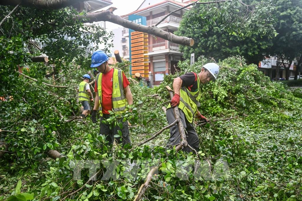 Cây cối bị quật đổ do mưa bão tại tỉnh Phúc Kiến, Trung Quốc, ngày 29/7/2023. Ảnh: THX/TTXVN