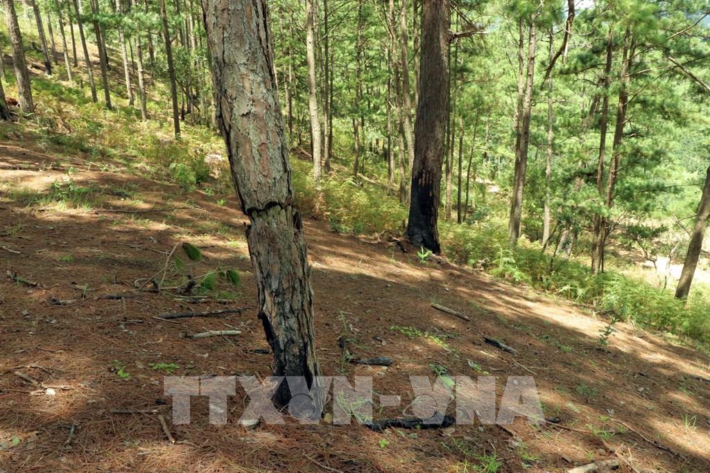 Nhiều cây thông cổ thụ ở Lạc Dương bị lâm tặc đốt cho chết để chiếm đất. Ảnh: Chu Quốc Hùng - TTXVN