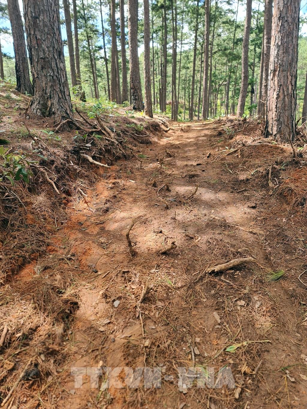 Một hộ gia đình ở Đạ Sar- Lạc Dương mới mở đường trái phép băng qua cánh rừng phòng hộ. Ảnh: Chu Quốc Hùng - TTXVN