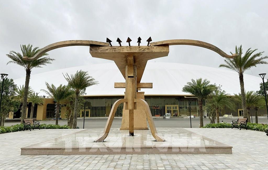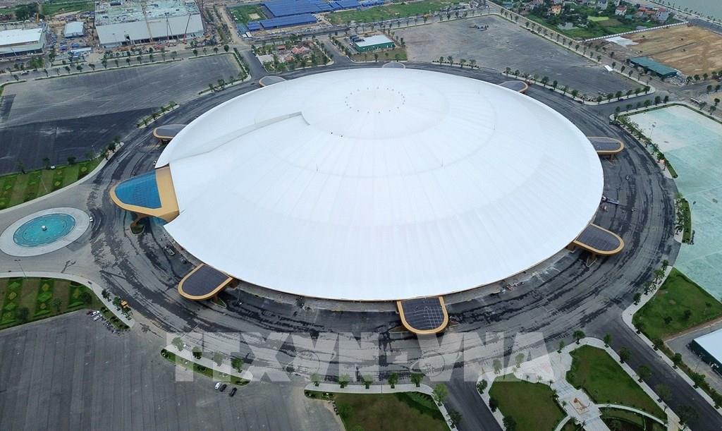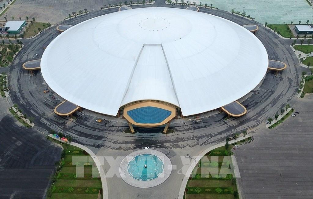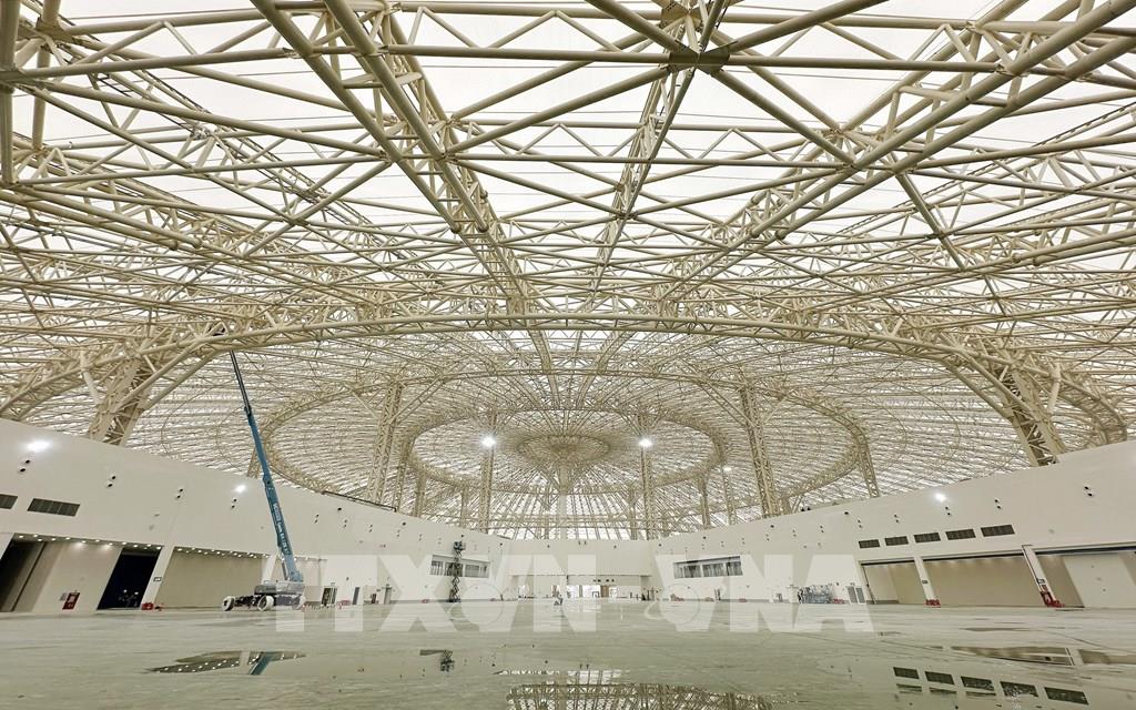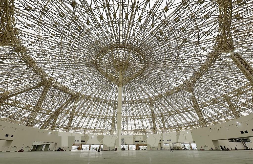 Hệ thống mái vòm nhà triển lãm Kim Quy được thiết kế với kết cấu ấn tượng từ 24.000 tấn thép. Ảnh: Quốc Khánh – TTXVN