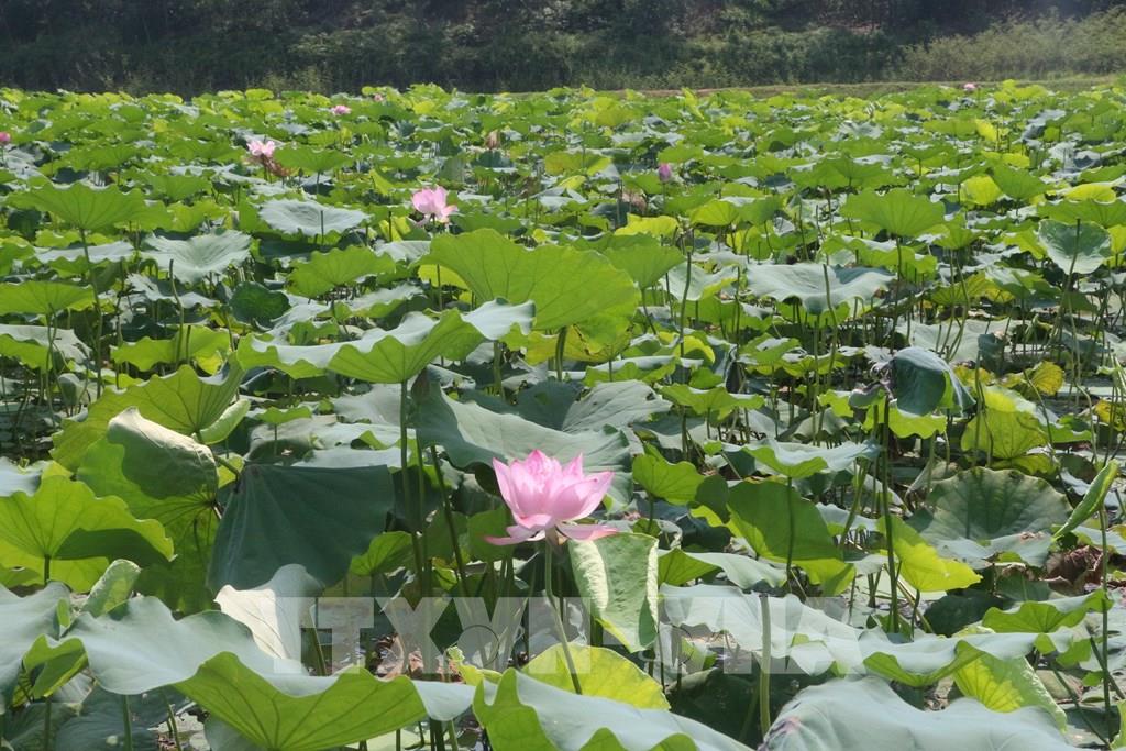 Các diện tích trồng sen được quy hoạch vùng nguyên liệu tạo cảnh quan thu hút du khách trải nghiệm cho du khách. Ảnh: Bích Huệ - TTXVN