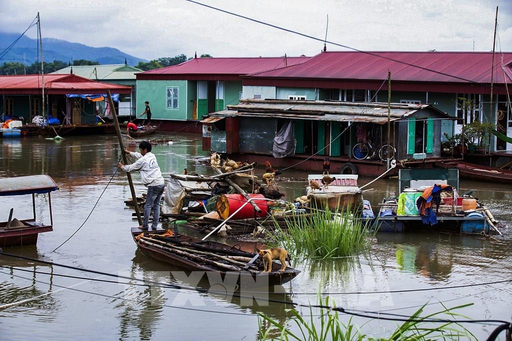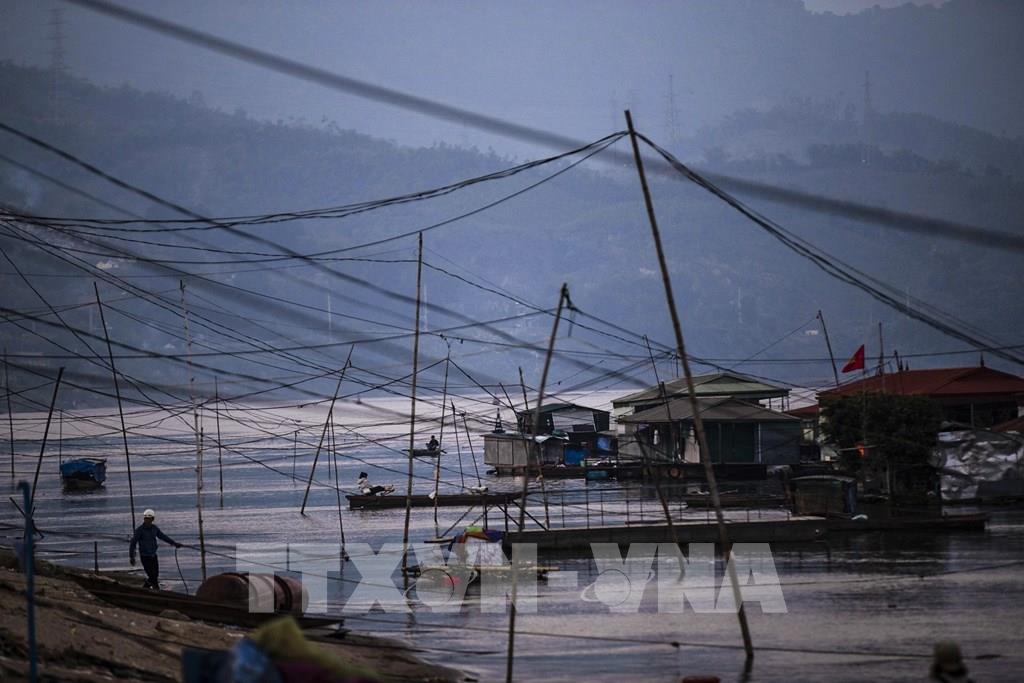 Cuộc sống người dân làng vạn chài bấp bênh theo mực nước sông Đà và trong nỗi lo lắng thường trực về điện. Ảnh: Trọng Đạt - TTXVN