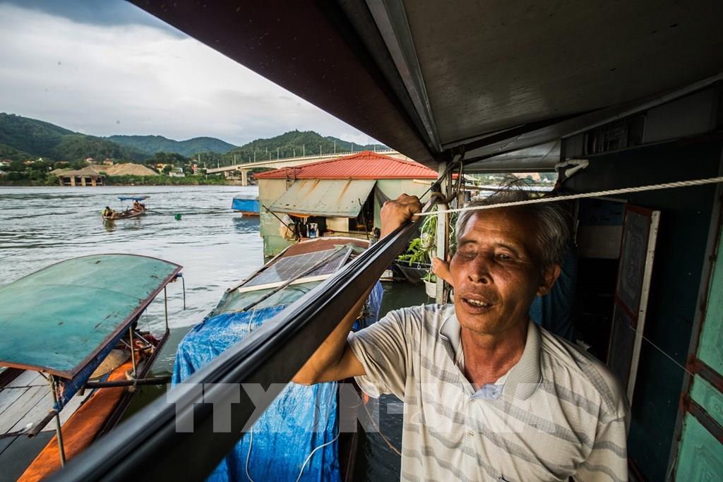 Gia đình ông Tuất là hộ có thời gian định cư lâu nhất làng vạn chài từ những năm 1980, sống cùng với những bấp bênh vất vả cùng những thiếu thốn về điện sinh hoạt kéo dài trong nhiều năm qua. Ảnh: Trọng Đạt - TTXVN