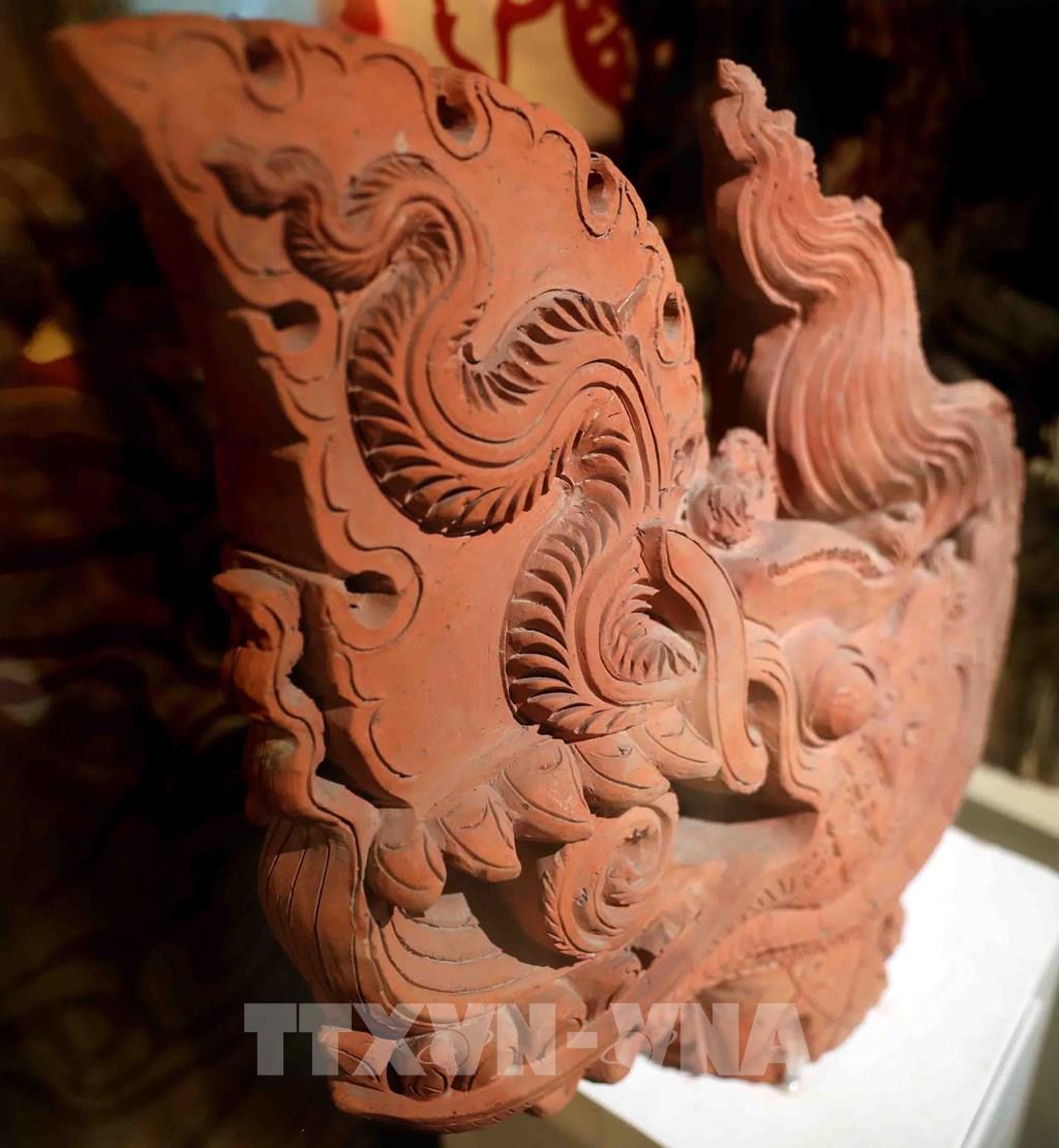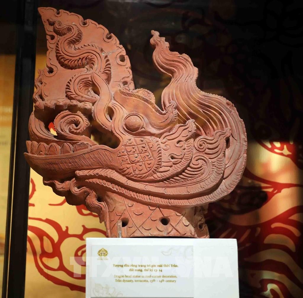 Đầu rồng thời Trần, niên đại: Thế kỷ XIII; hiện lưu giữ tại Trung tâm Bảo tồn Di sản Thăng Long - Hà Nội. Ảnh: Thanh Tùng - TTXVN