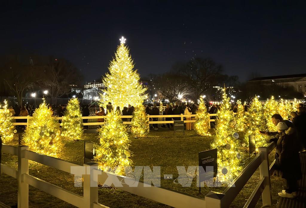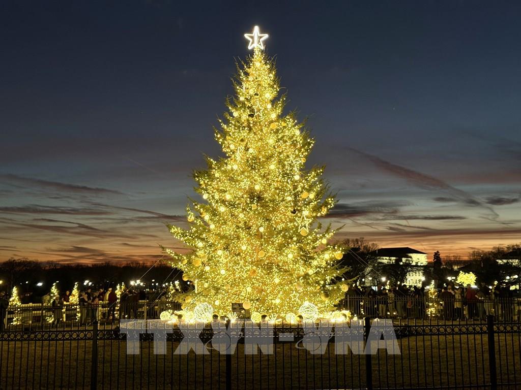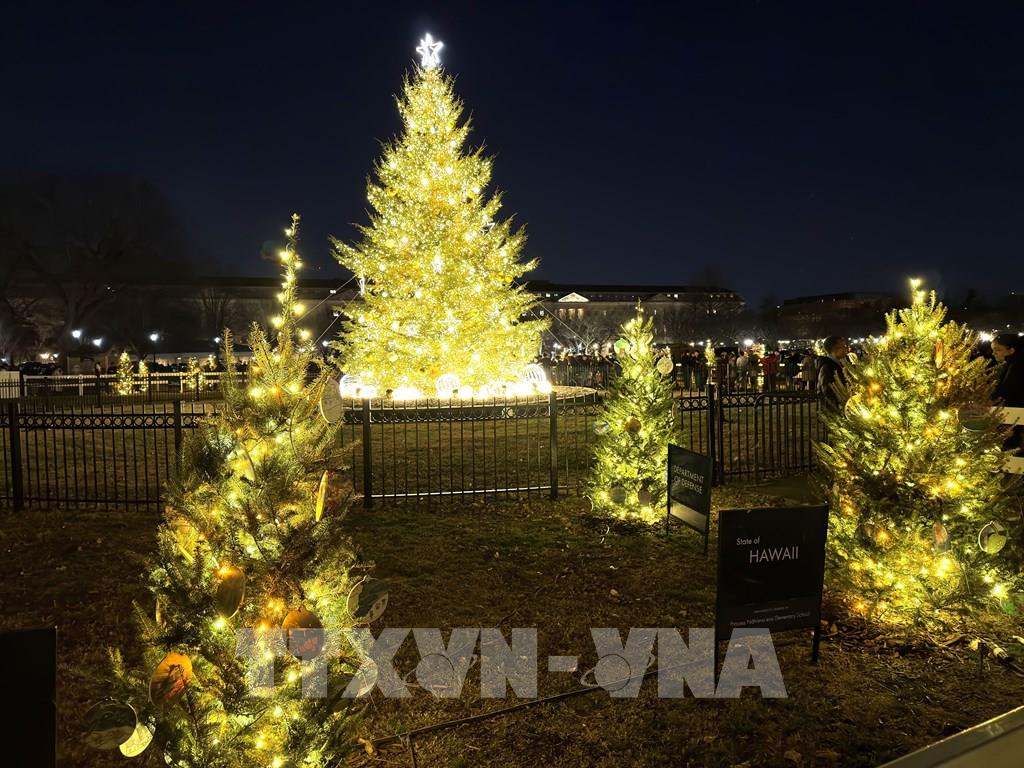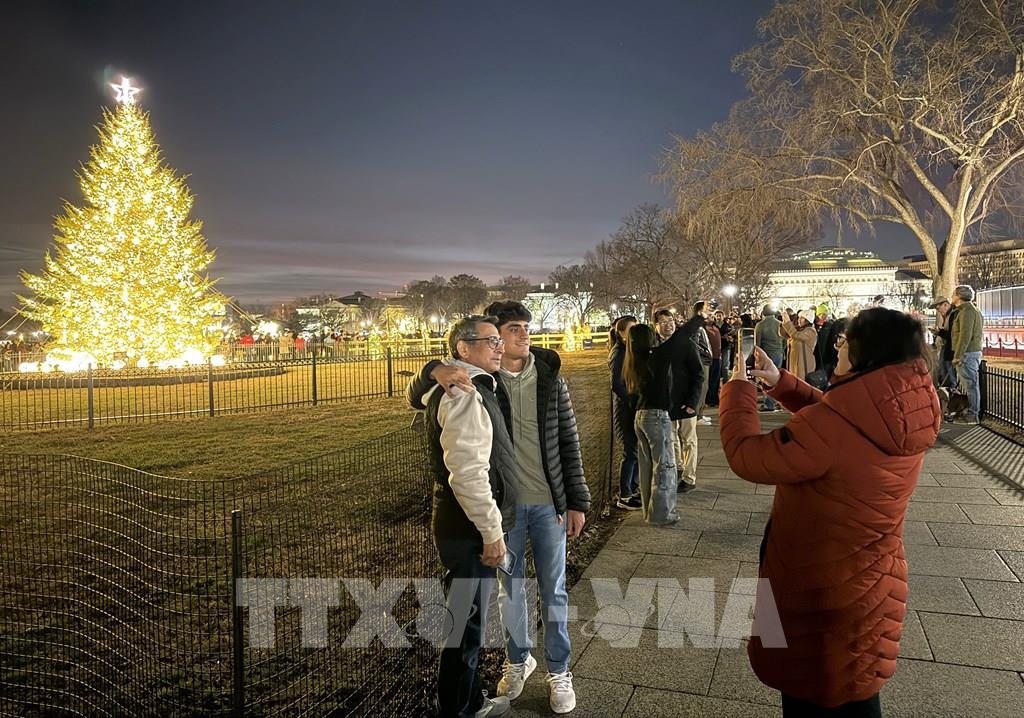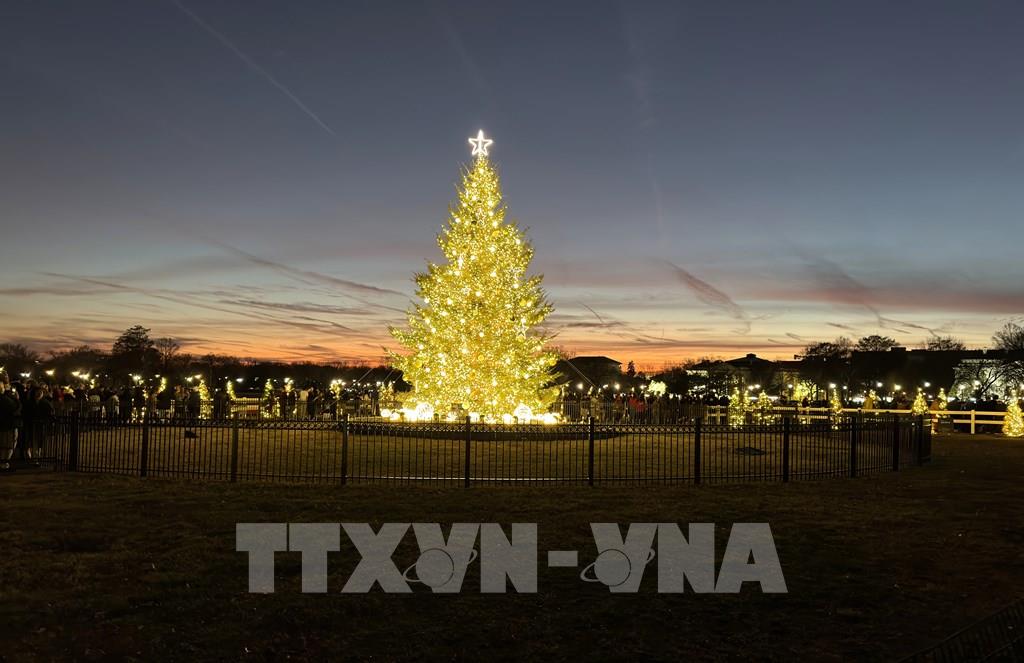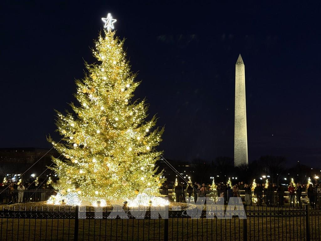 Truyền thống thắp sáng Cây thông Noel Quốc gia bắt đầu từ năm 1923, khi Tổng thống Calvin Coolidge thắp sáng cây linh sam cao gần 15 mét từ Vermont, trang trí bằng 2.500 bóng đèn màu đỏ, trắng và xanh. Ảnh: Ngọc Quang – PV TTXVN