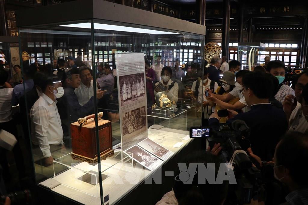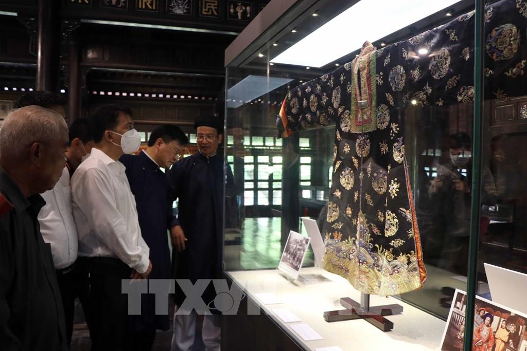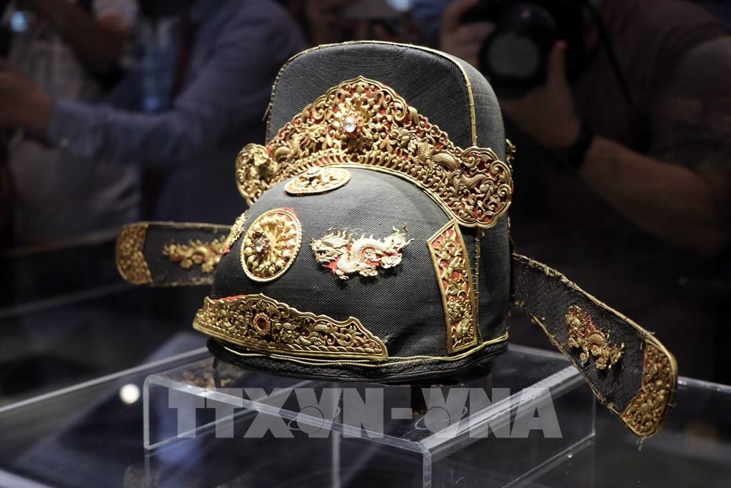 08:44' - 18/04/2022Tại Bảo tàng Cổ vật Cung đình Huế, UBND tỉnh Thừa Thiên – Huế tổ chức lễ tiếp nhận và trưng bày hai cổ vật hiến tặng qua đấu giá thành công ở nước ngoài của Tập đoàn Sunshine gồm Mũ quan đại thần và Áo Nhật bình cung tần triều Nguyễn, có niên đại cuối thế kỷ 19 đầu thế kỷ 20.