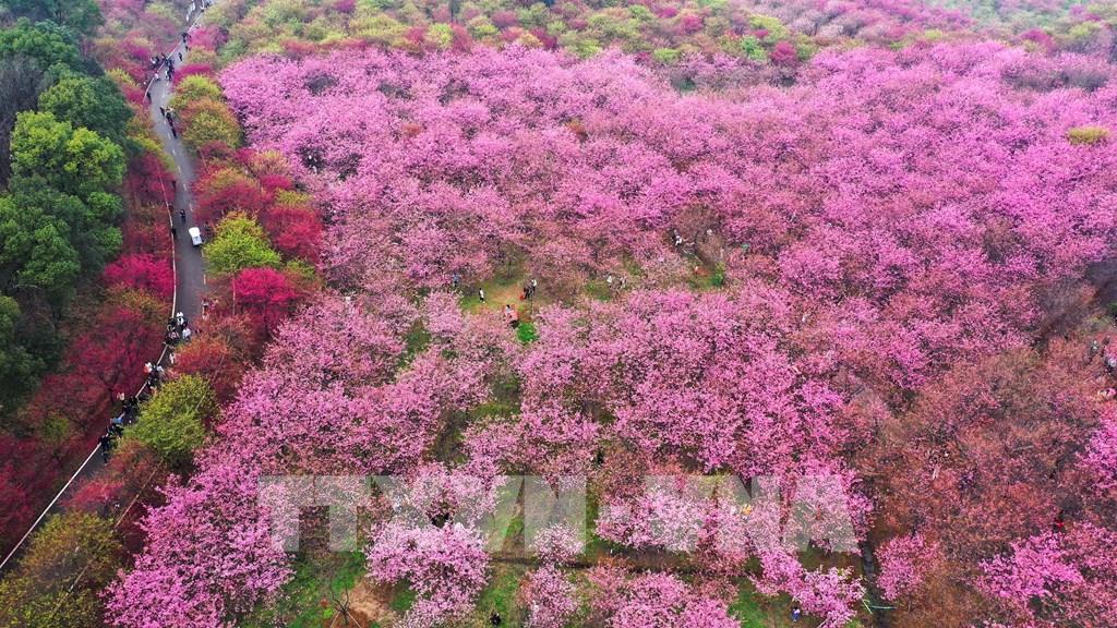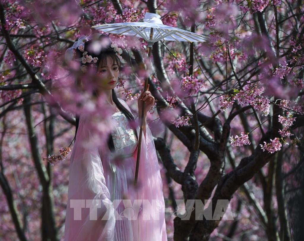 Vẻ đẹp quyến rũ của hoa anh đào tại thành phố Trường Ninh, tỉnh Hồ Nam, Trung Quốc. THX/TTXVN