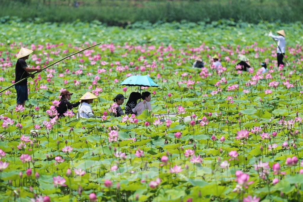 Hoa sen bắt đầu nở rộ ở nhiều địa phương của Trung Quốc, thu hút đông du khách tới chiêm ngưỡng. Ảnh: THX/TTXVN
