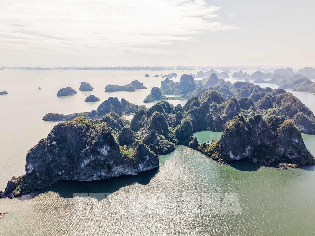 Phong cảnh Vịnh Hạ Long khu vực hang Luồn nhìn từ trên cao. Ảnh: Hoàng Hiếu - TTXVN