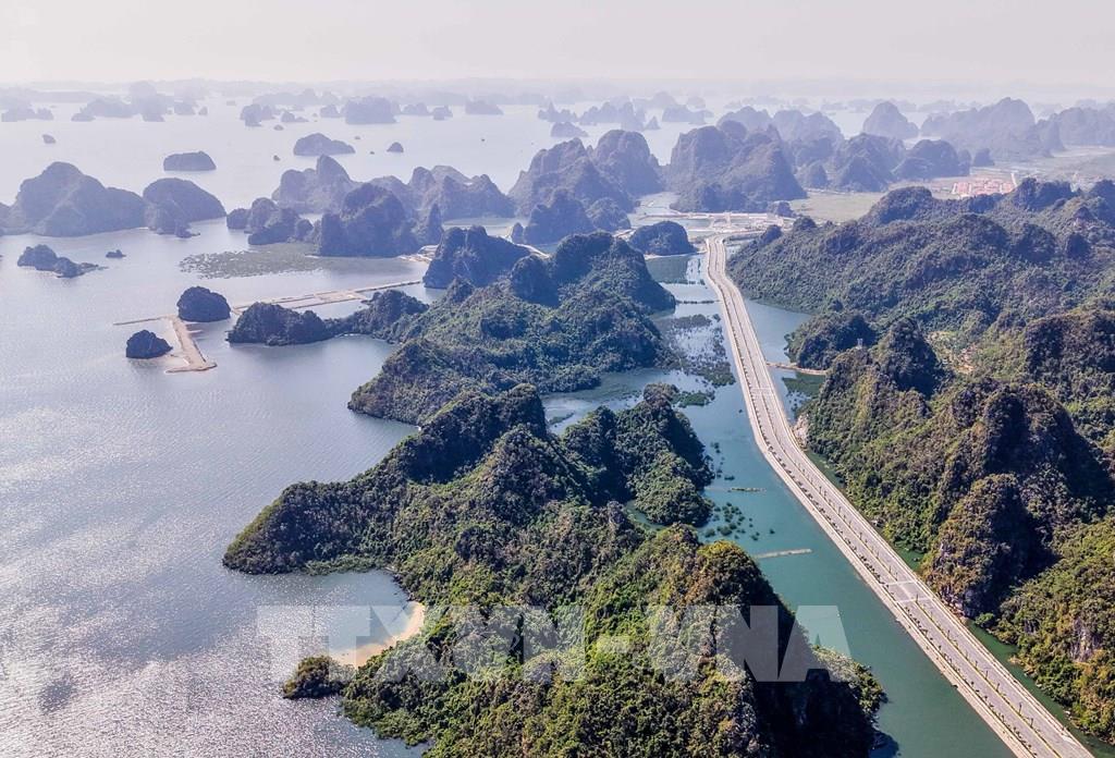 Phong cảnh Vịnh Hạ Long tuyệt đẹp với tuyến đường ven biển tỉnh Quảng Ninh. Ảnh: Hoàng Hiếu - TTXVN