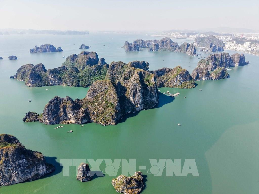 Quang cảnh tuyệt đẹp của thành phố Hạ Long với các đảo trên Vịnh Hạ Long bao bọc phía ngoài. Ảnh: Hoàng Hiếu - TTXVN