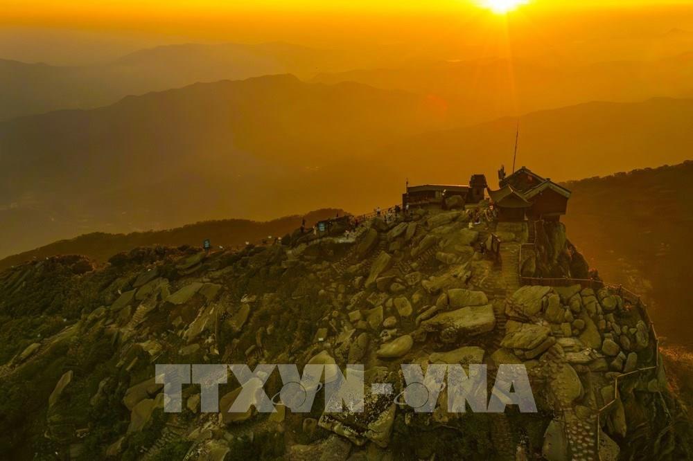 Vẻ đẹp hoàng hôn chùa Đồng mà không nơi nào có được. Ảnh: Minh Đức - TTXVN