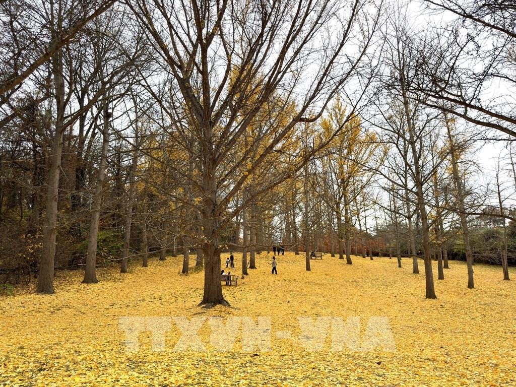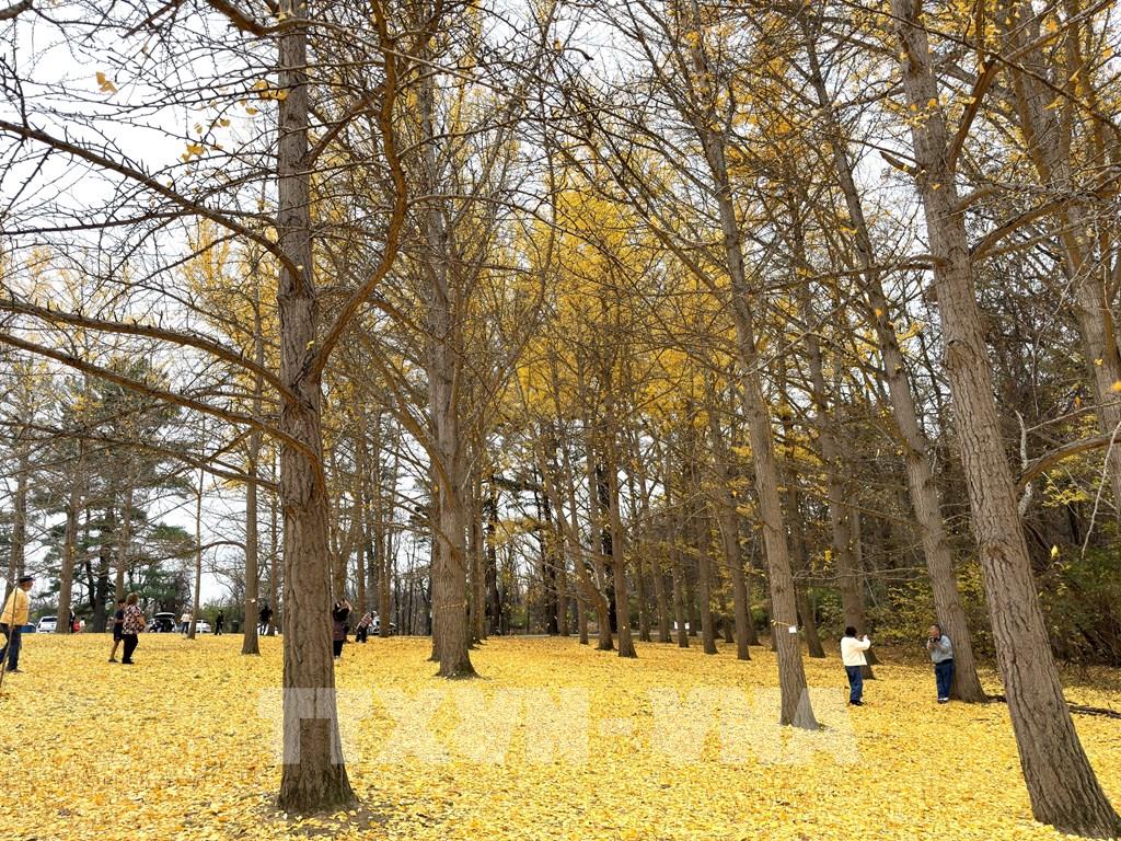 Rừng Ginkgo Grove trở thành biểu tượng của sự bền bỉ, của cái đẹp không phai mờ theo thời gian. Ảnh: Ngọc Quang - PV TTXVN