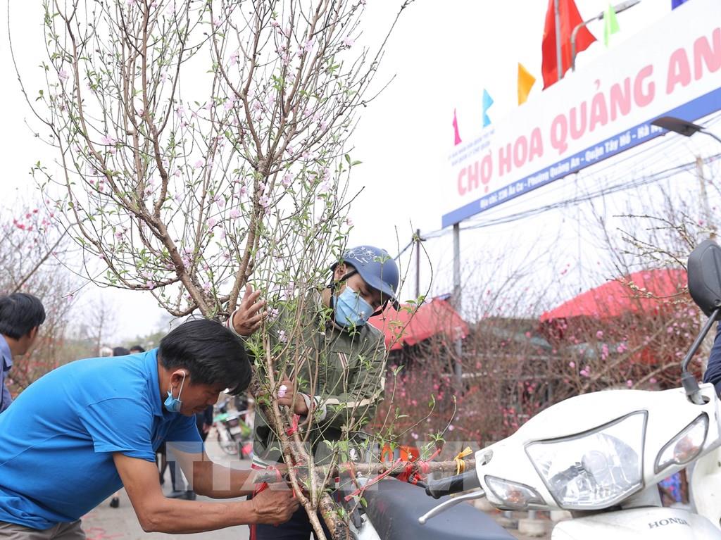 09:43' - 27/01/2021Còn hơn 2 tuần nữa là đến Tết Nguyên đán Tân Sửu 2021, nhưng tại chợ hoa Quảng Bá (Tây Hồ) đã đỏ rực bởi hoa đào được bày bán, người dân Hà Nội và các tỉnh tấp nập thăm quan, mua sắm, chọn những cành, cây đào ưng ý chơi Tết sớm.