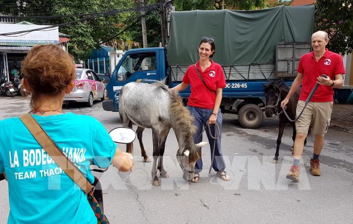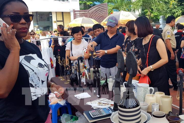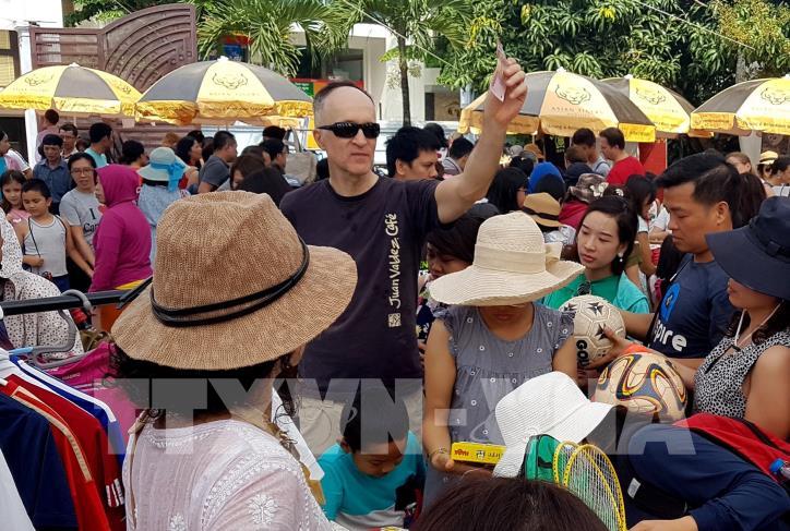 Những khách hàng vui vẻ đi chợ Tây trên đất Ta. Ảnh: TTXVN
