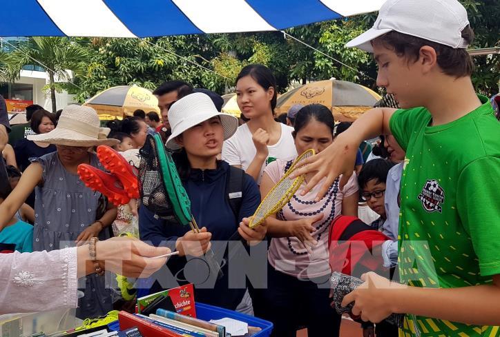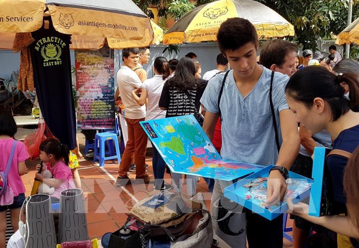 Hàng hoá được bán tại chợ gồm quần áo, giầy dép, đồ chơi, đồ gia dụng...chất lượng vẫn còn tốt, được các gia đình nước ngoài sau khi hết nhiệm kỳ công tác tại Việt Nam đem đến bán thanh lý. Ảnh: TTXVN