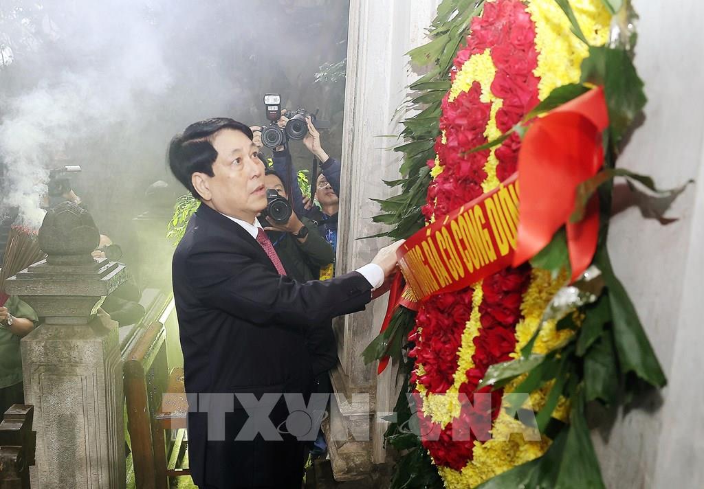 Chủ tịch nước Lương Cường dâng hương tại Lăng Vua Hùng. Ảnh: Lâm Khánh – TTXVN
