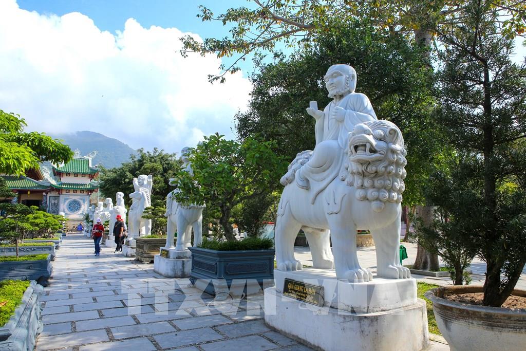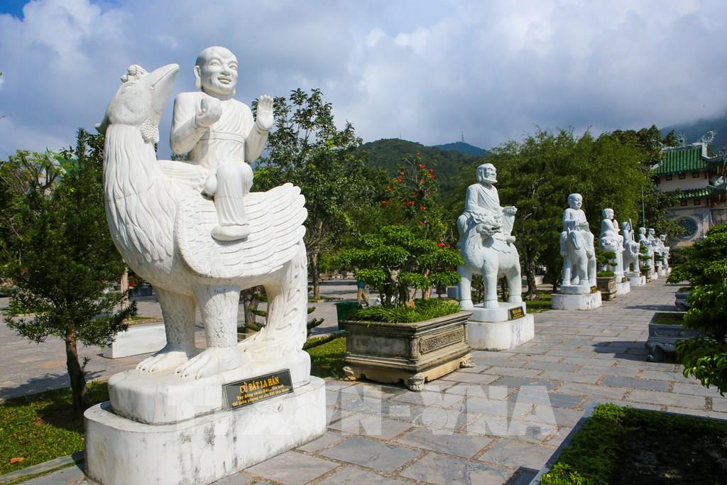 18 tượng đá lớn là các vị La Hán được sắp đặt dọc hai bên đường vào Chánh điện trong Quần thể Chùa Linh Ứng - Bãi Bụt. Ảnh: Trần Lê Lâm - TTXVN