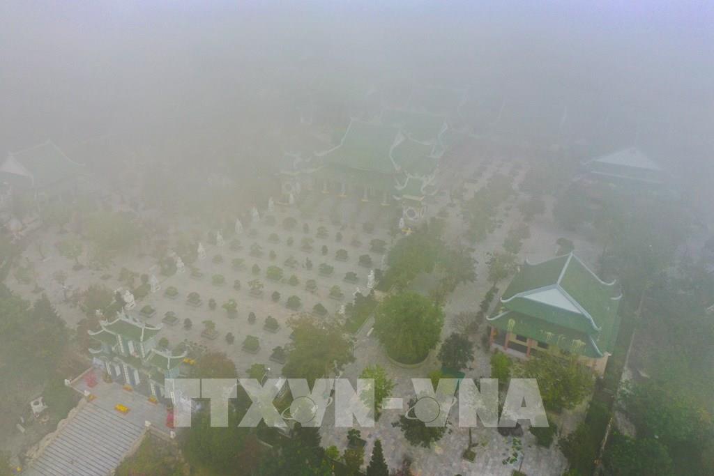 Vào những ngày thời tiết thay đổi, quần thể chùa Linh Ứng ẩn hiện trong làng sương sớm. Ảnh: Trần Lê Lâm - TTXVN