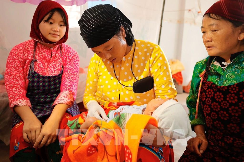 Mô hình "Cô đỡ thôn bản" là người dân tộc cần được nhân rộng và duy trì bền vững. Điều này đòi hỏi các cấp, ngành liên quan cần có những động thái quan tâm và tích cực hơn để khuyến khích và có những chính sách tạo điều kiện cho các cô đỡ yên tâm làm việc. Ảnh: Minh Quyết - TTXVN