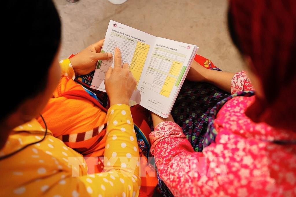 Tuyên truyền, phổ biến đến bà mẹ sau sinh đảm bảo quy trình nuôi con, chăm sóc trẻ. Ảnh: Minh Quyết - TTXVN
