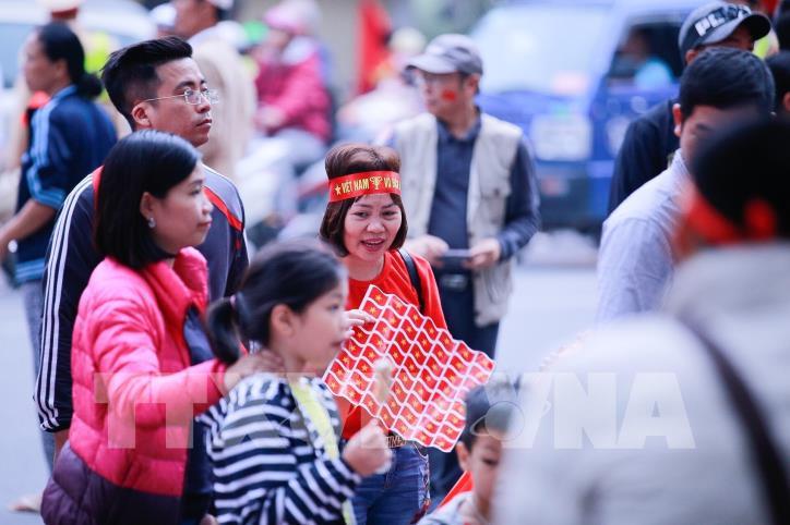 Rất đông cổ động viên đã có mặt quanh khu vực svđ Hàng Đẫy trước trận đấu. Ảnh: Trọng Đạt - TTXVN