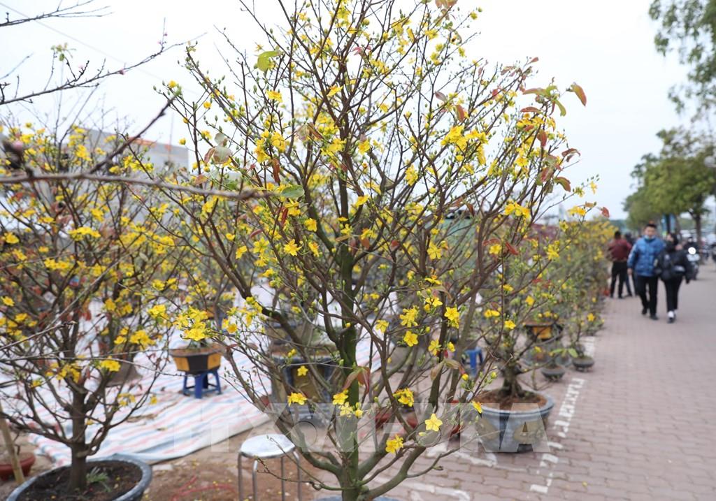 Những cây mai vàng khoe sắc Xuân trên phố hoa Cổ Linh (Long Biên). Ảnh: Hoàng Hiếu - TTXVN