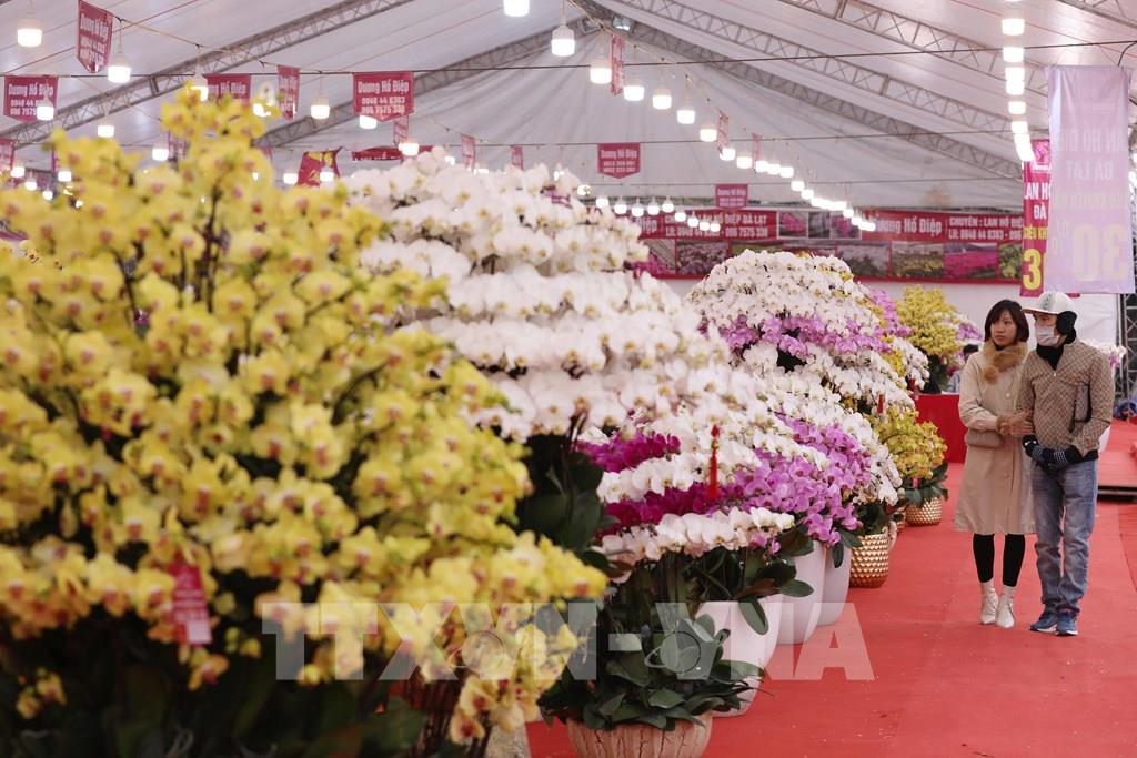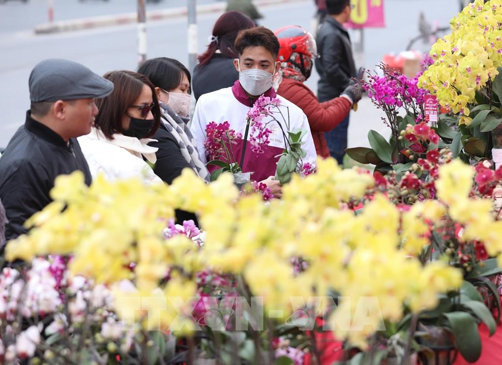 Trên đường Nghi Tàm, hoa Lan hồ điệp Đà Lạt được nhiều người chọn mua. Ảnh: Hoàng Hiếu - TTXVN
