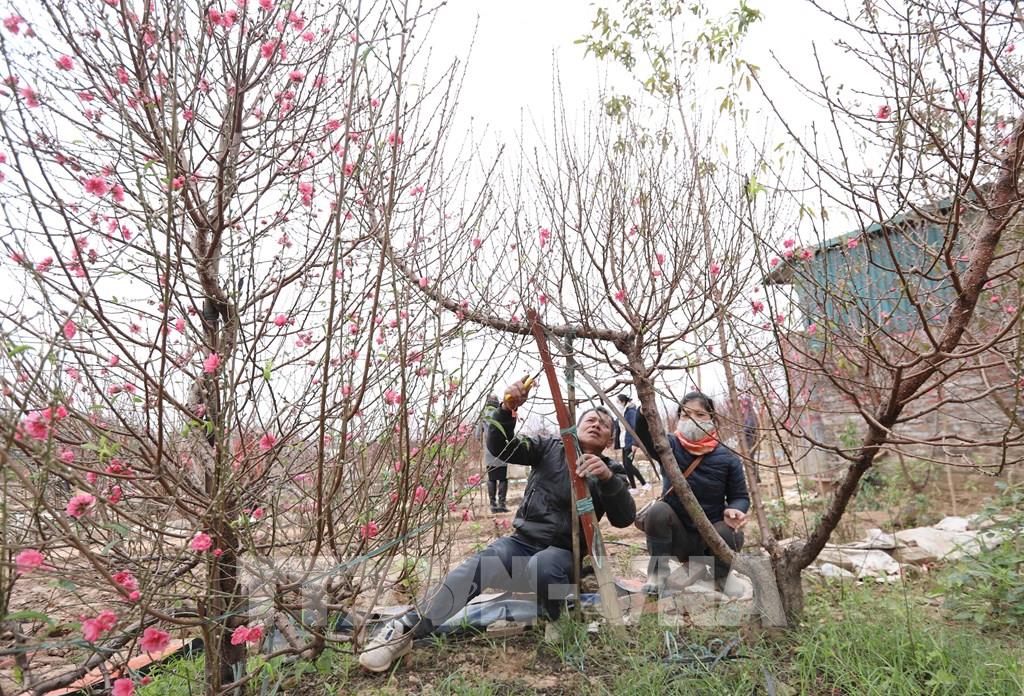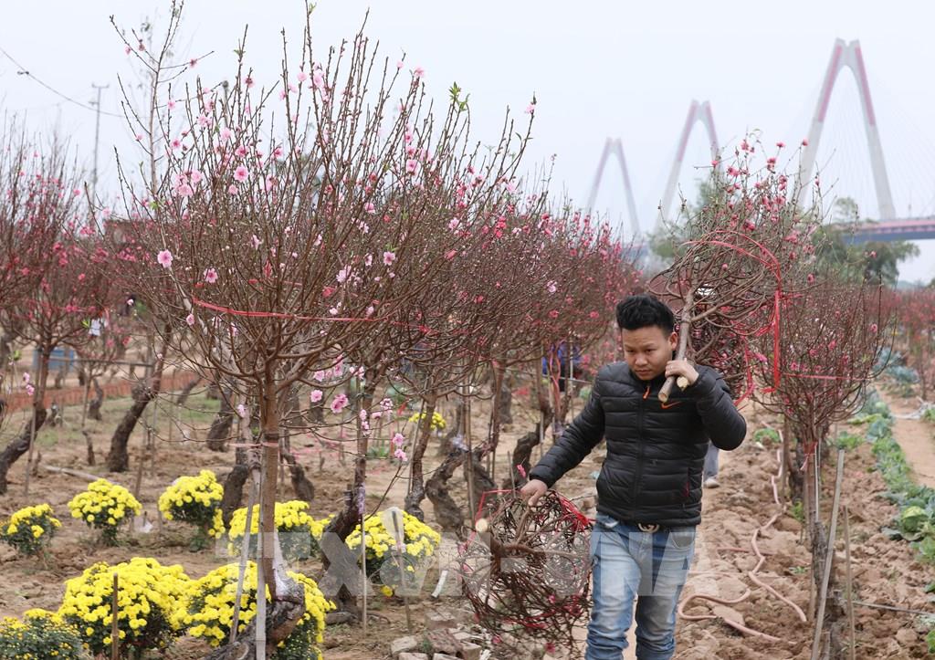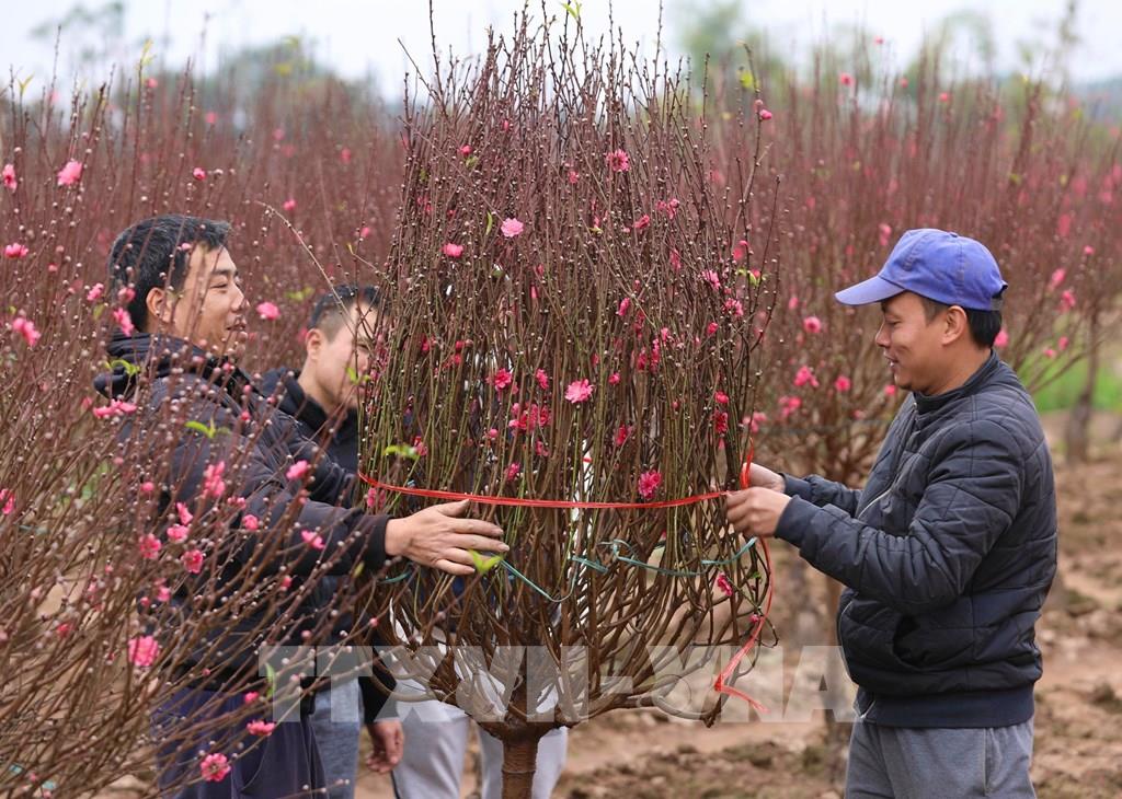 Những cây đào Nhật Tân đẹp mang theo không khí Tết chuẩn bị theo chân khách đặt đến từng gia đình. Ảnh: Hoàng Hiếu - TTXVN