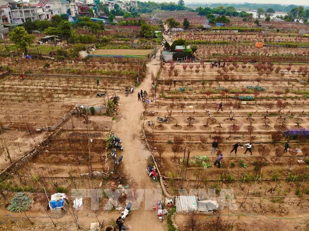 Khung cảnh nhộn nhịp tại làng đào Nhật Tân những ngày cuối cùng của năm Nhâm Dần. Ảnh: Hoàng Hiếu - TTXVN