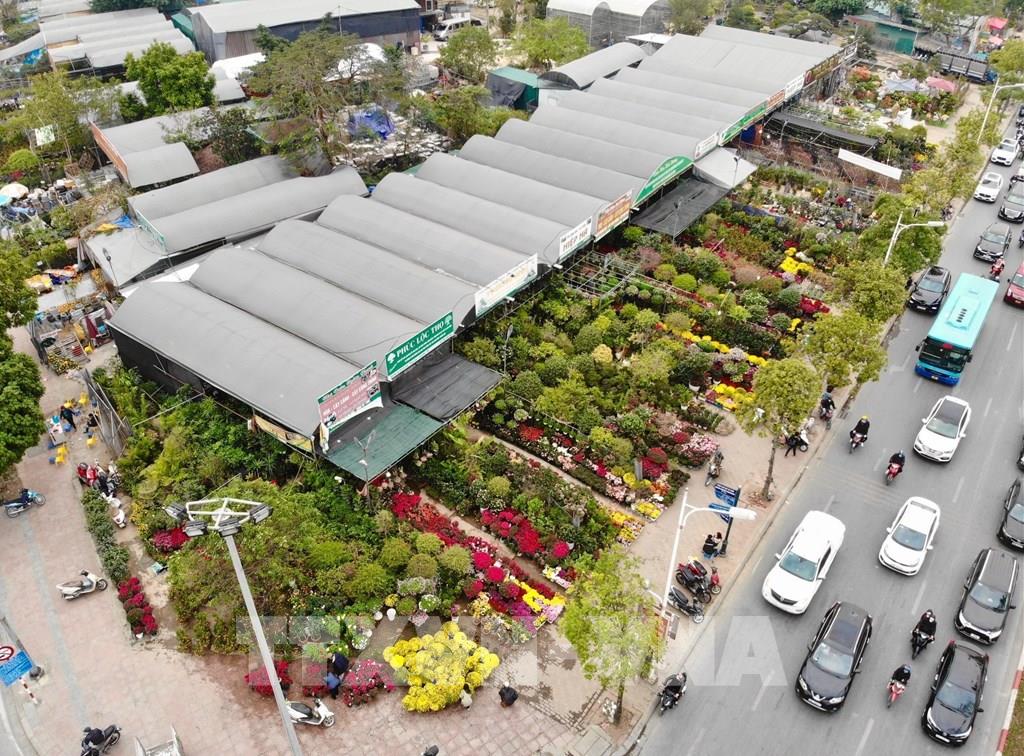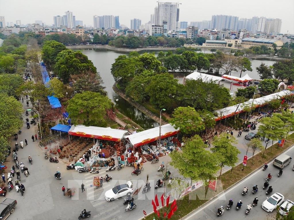 Chợ hoa xuân Quý Mão quận Hoàng Mai nhộn nhịp. Ảnh: Hoàng Hiếu - TTXVN