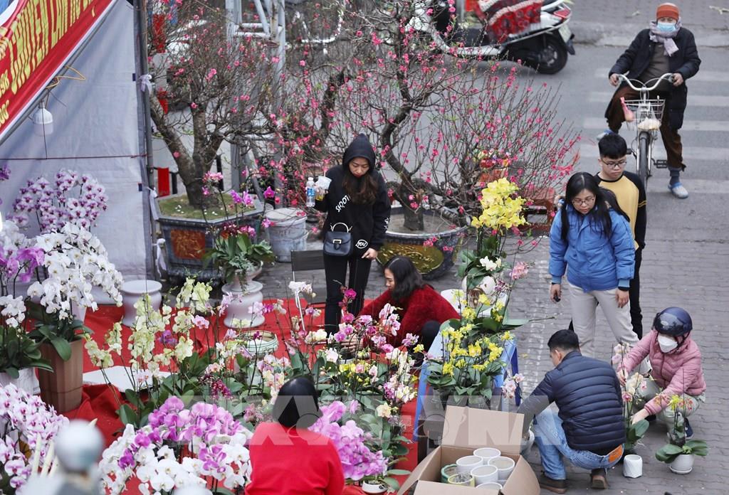 Khách chọn mua cây, hoa chơi Tết Quý Mão tại phố hoa Cổ Linh (Long Biên). Ảnh: Hoàng Hiếu - TTXVN