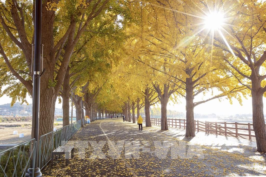 08:49' - 11/11/2022Đại lộ cây Ngân hạnh ở thành phố Asan tỉnh Nam Chungcheong (Hàn Quốc), cách thủ đô Seoul 3 giờ xe chạy, được mệnh danh là một trong những con đường mùa Thu đẹp nhất ở Xứ sở Kim Chi. Với chiều dài khoảng 2 km chạy dọc theo con suối Gokyo, con đường mùa Thu nhuộm sắc vàng với hai hàng cây uốn lượn trở thành điểm đến dạo chơi, ngắm cảnh và check-in của hàng vạn du khách mỗi dịp Thu về.